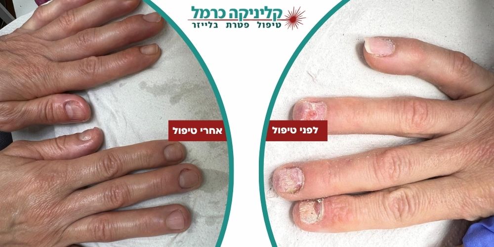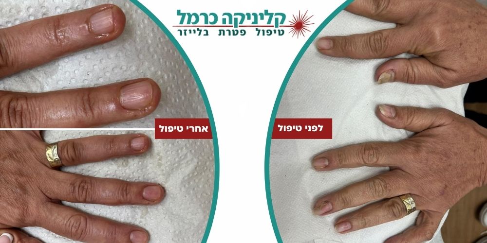 טיפול בפטרת ציפורניים בידיים בקליניקה כרמל, לפני ואחרי